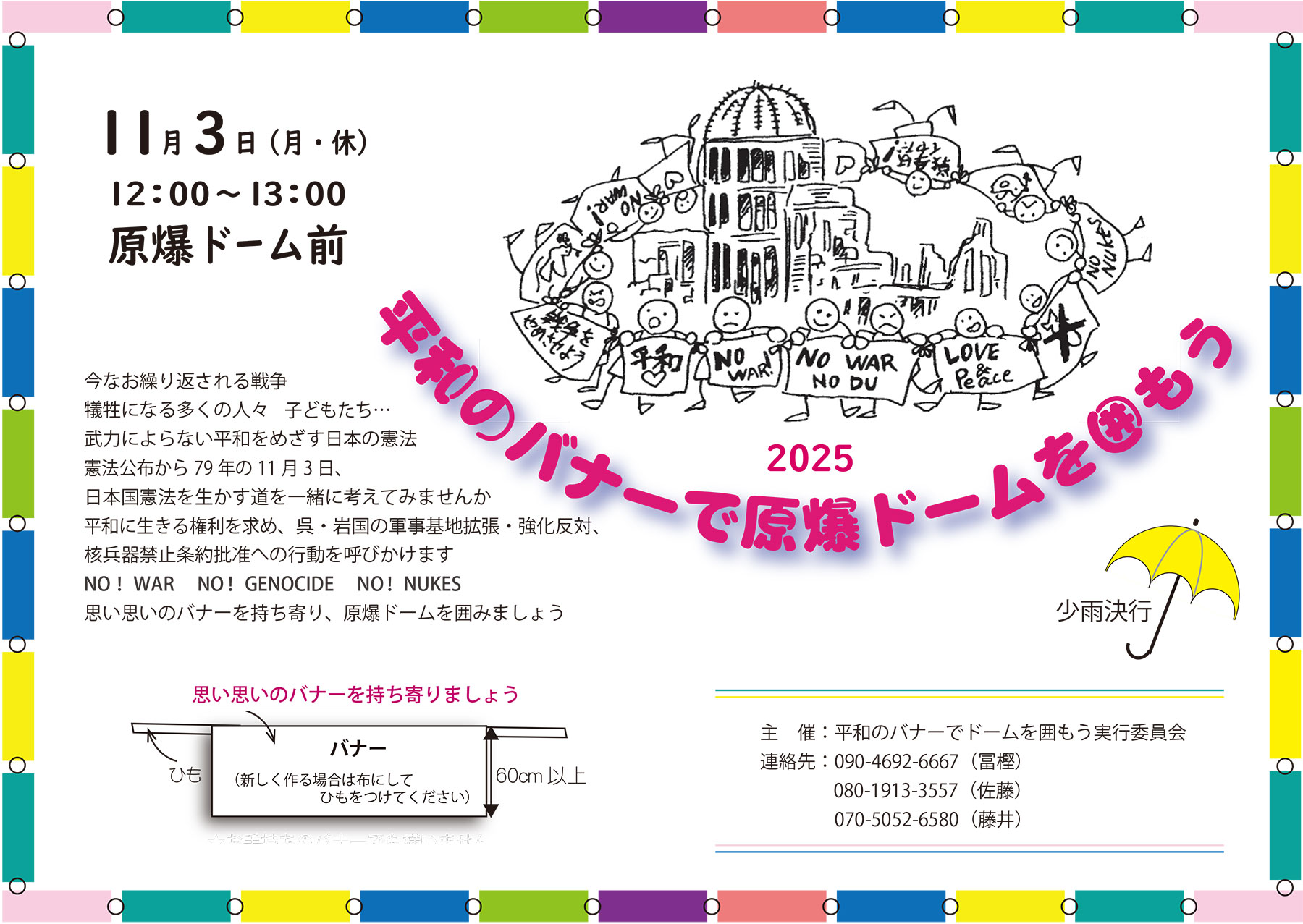■11.3 原爆ドームを平和のバナーで囲もう 2024 11月3日(日・休) 原爆ドーム前 12時~13時