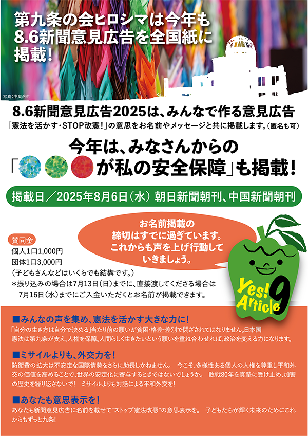8.6新聞意見広告2025にご参加ください!