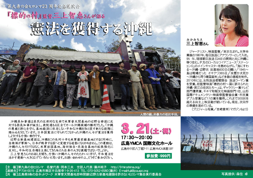 17:30~ 23周年記念講演会 講師:三上智恵さん