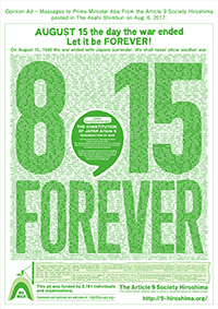 8月6日、ストップ改憲!新聞意見広告を掲載