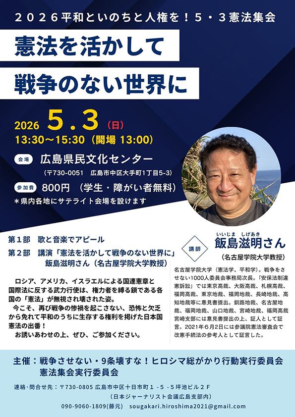5月3日、ヒロシマ総がかり憲法集会にご参加ください